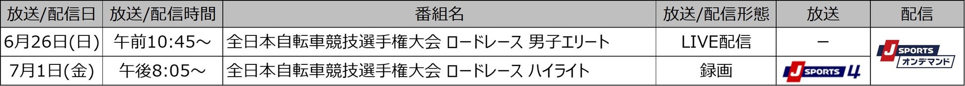 広島県中央森林公園サイクリングロードで開催される国内最高峰レース、全日本自転車競技選手権大会 ロードレース。ナショナルチャンピオンジャージを巡る熱い戦いの模様を例年は後日ハイライトでお届けしてきましたが、今年はJ SPORTSオンデマンド限定で男子エリートレースをLIVE配信します。昨年は草場啓吾選手が(愛三工業レーシングチーム)が初優勝。今年は誰が日の丸をあしらったチャンピオンジャージを獲得するのか注目です。ハイライトはツール・ド・フランス開幕日の7月1日(金)放送・配信しますのでツール・ド・フランスと合わせてお楽しみください。